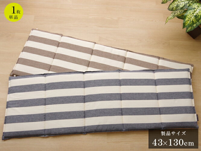 シートクッション ロング おしゃれ 北欧マリンボーダー柄シートクッション(ロング)』[約43×130cm] ベージュ・ネイビー座布団 椅子用 クッション 折り畳み 綿100% 長方形 車 ソファー フロア リビング【9148649】ロカ