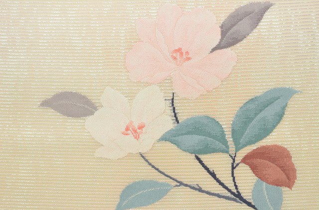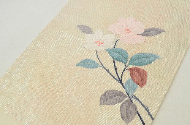 説明 白色地に椿文様が施された粋な九寸の名古屋帯です。