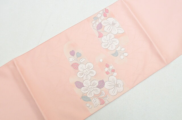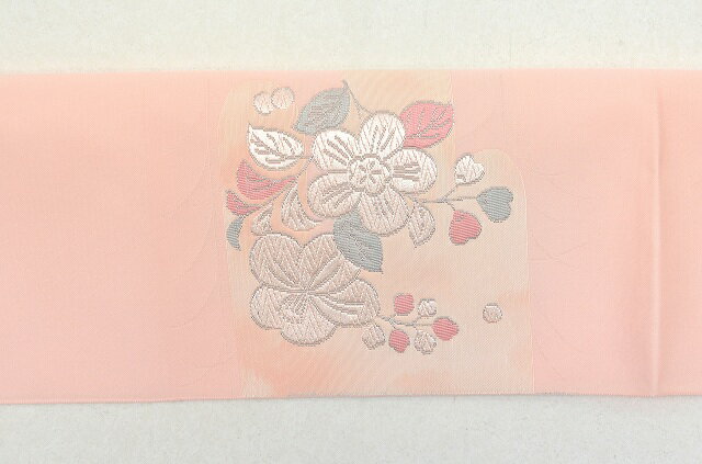 説明 ピンク色地に植物文様が施された優しい感じの八寸の名古屋帯です。