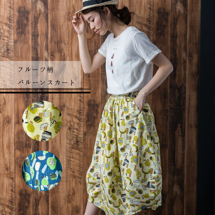 【北欧フルーツ柄バルーンスカート】レディース/ボトムス/スカート/バルーンスカート/フルーツ柄/綿/イマゴ/かわいい/カジュアル/大人の/元気/果物