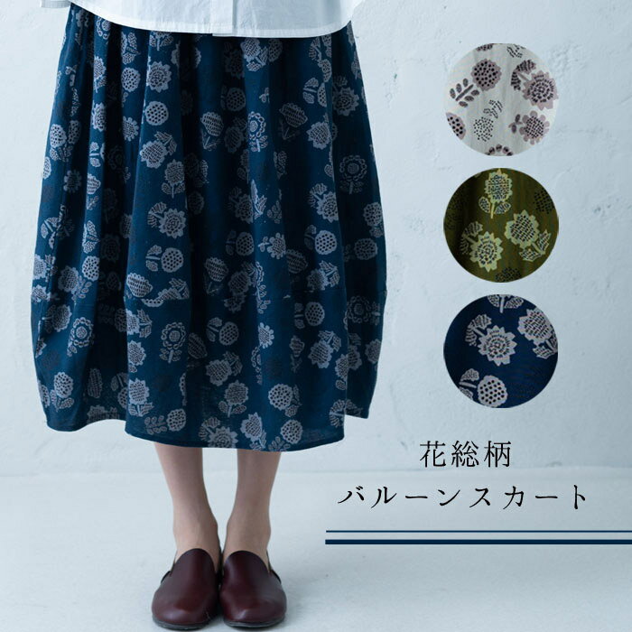 【総柄畝ありバルーンスカート】レディース/ボトムス/スカート/綿/花柄/プリント/春夏/ふんわり/ゆったり/大人の/素敵/ナチュラル/北欧